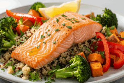Wholesome Baked Salmon with Quinoa & Roasted Veggies Delight